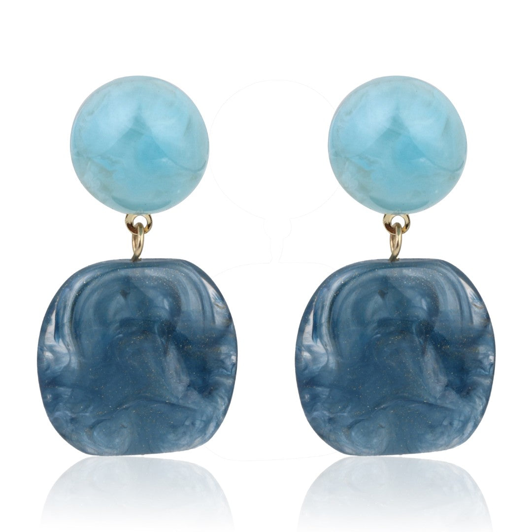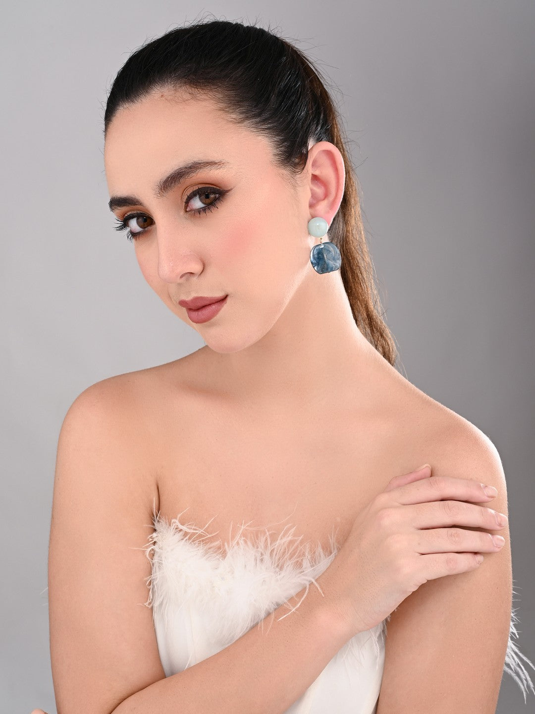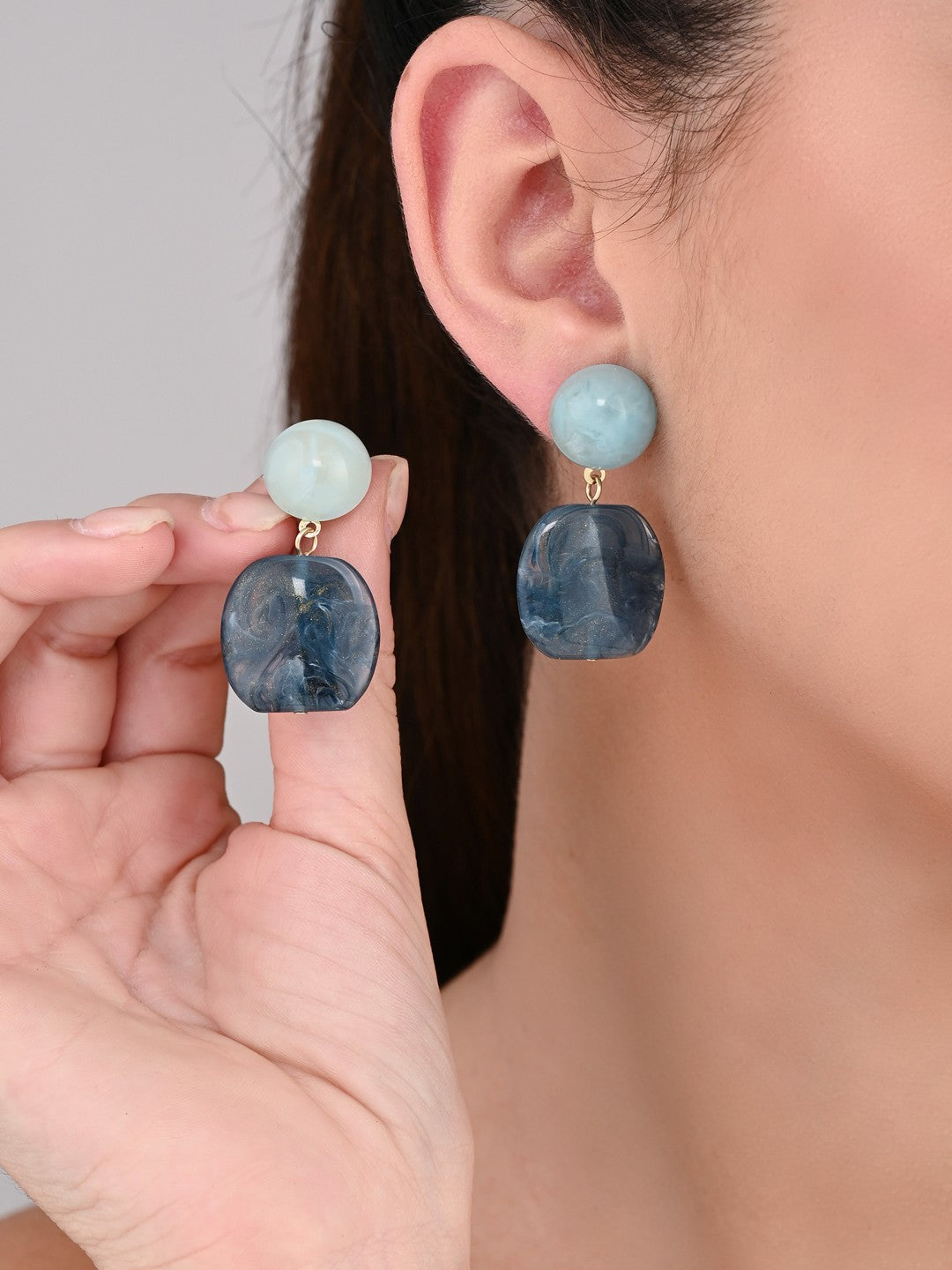 Rich aqua-toned resin earrings with a glossy finish and subtle shimmer. Perfect for adding warmth and elegance to your everyday or evening look.