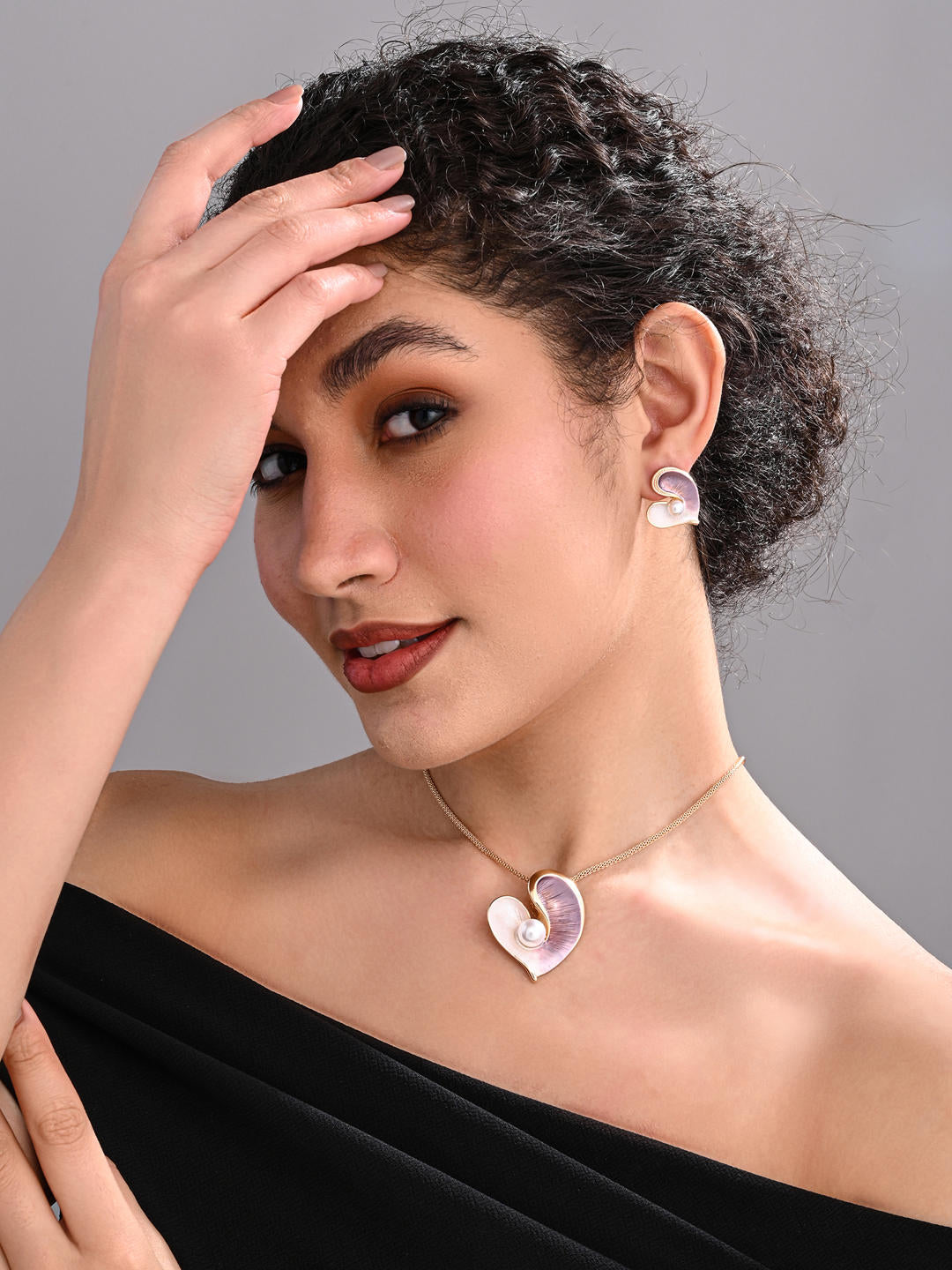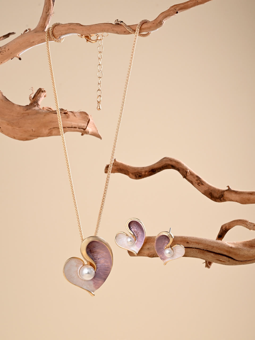 Romantic and radiant — this Blush Pearl Heart Set features a soft pink enamel heart wrapped in golden curves, finished with a delicate pearl accent. Perfect for adding a feminine, graceful touch to any outfit.