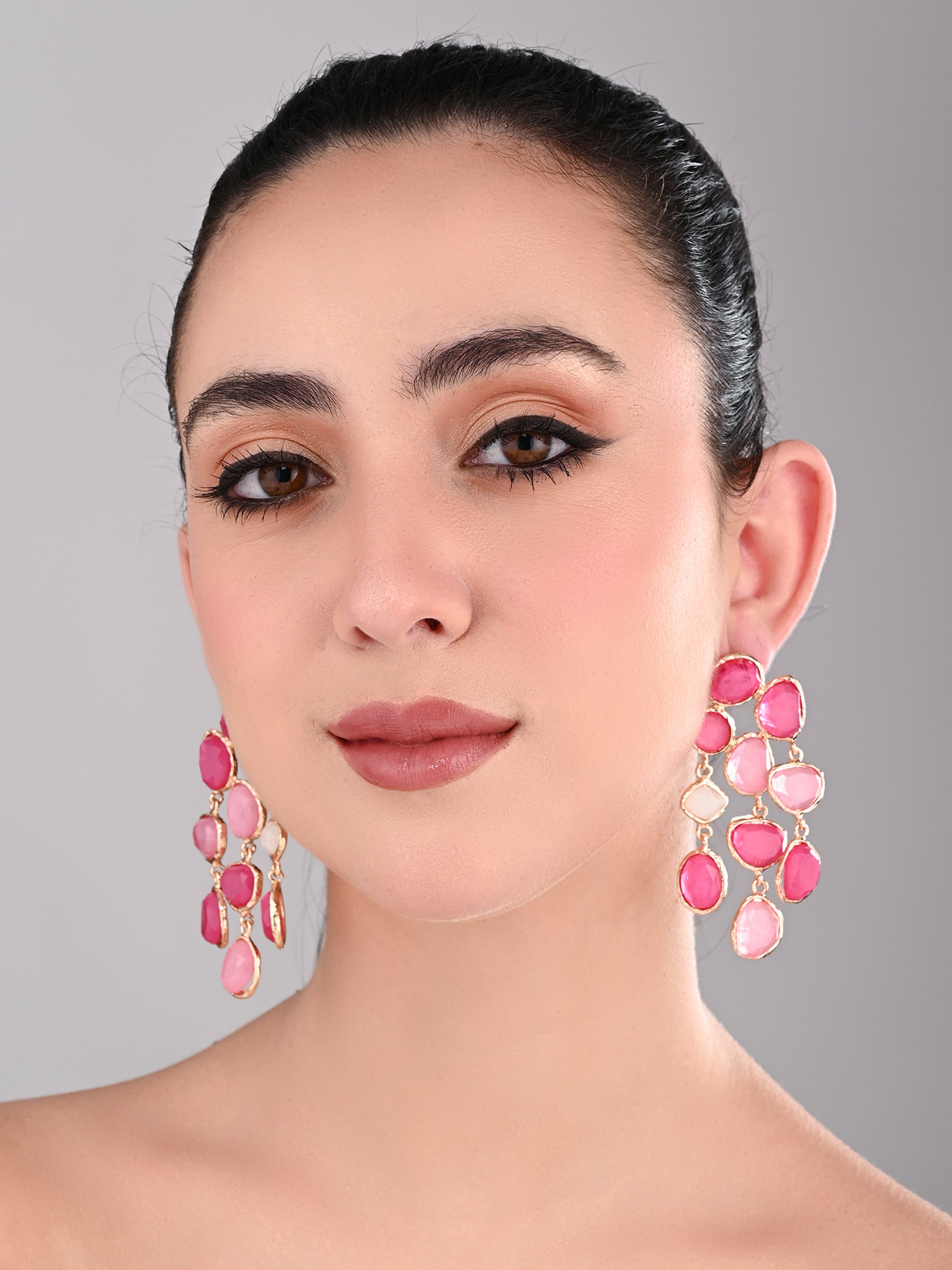 Color your world bold with Boho Bloom — a vibrant cascade of gemstone-like charms that bring life to any outfit. Each dangling piece is set in textured gold and bursts with a palette of earthy greens, ocean blues, blush pinks, and neutral tones. Playful yet polished, these earrings are your go-to for festivals, brunches, or just a mood boost.