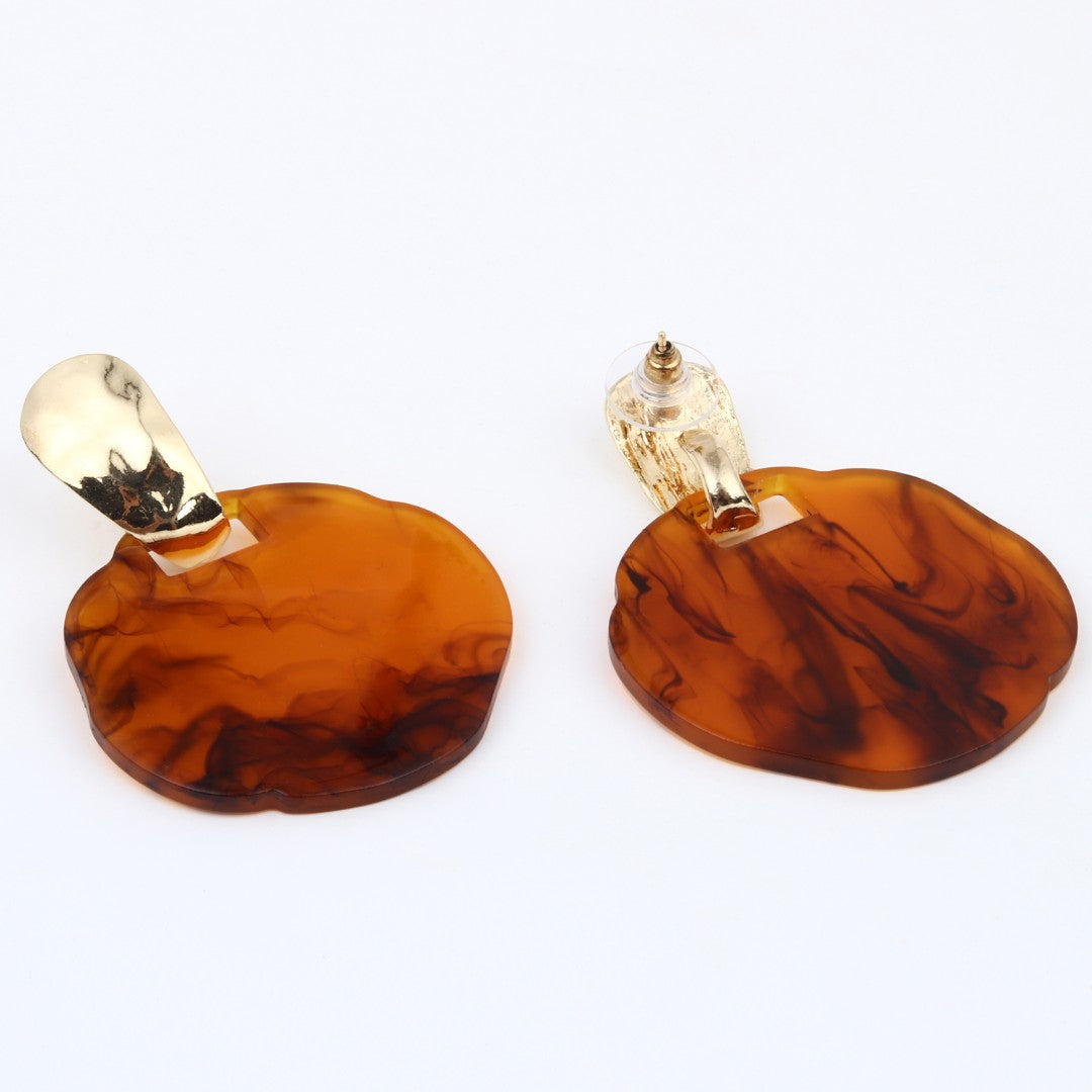 Make a bold yet elegant statement with our Marbled Amber Statement Earrings. These eye-catching earrings feature abstract, marbled resin discs in warm amber tones, accented with high-shine gold-tone ear toppers. The swirling black patterns in the translucent resin create a sophisticated, artistic look that’s perfect for adding flair to both casual and dressy outfits. Lightweight and stylish, they’re your go-to accessory for effortless glamour.