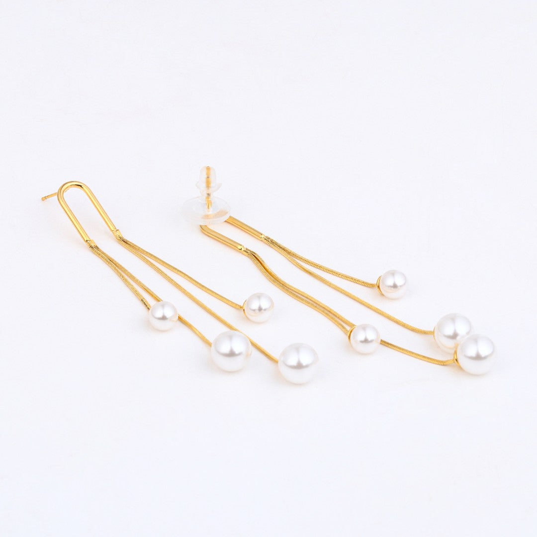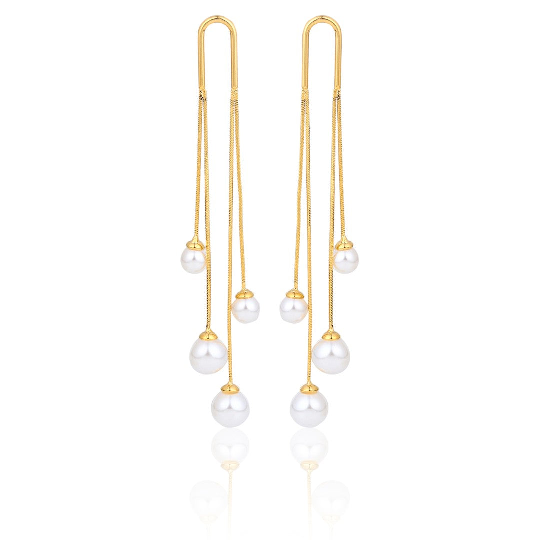 Designed with cascading pearl drops suspended from a 925 sterling silver hook, these statement earrings add graceful movement and modern elegance to any look—lightweight yet striking.