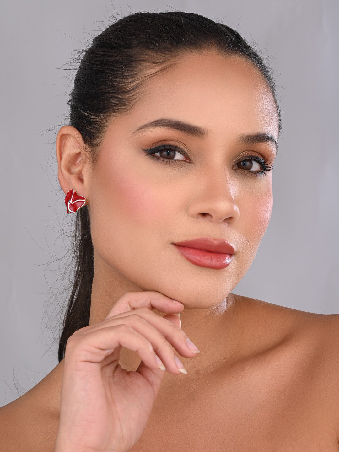 Designed in a timeless heart shape with a rich red finish, these stud earrings feature a 925 sterling silver post for comfortable, skin-safe everyday wear. Elegant, subtle, and easy to pair.
