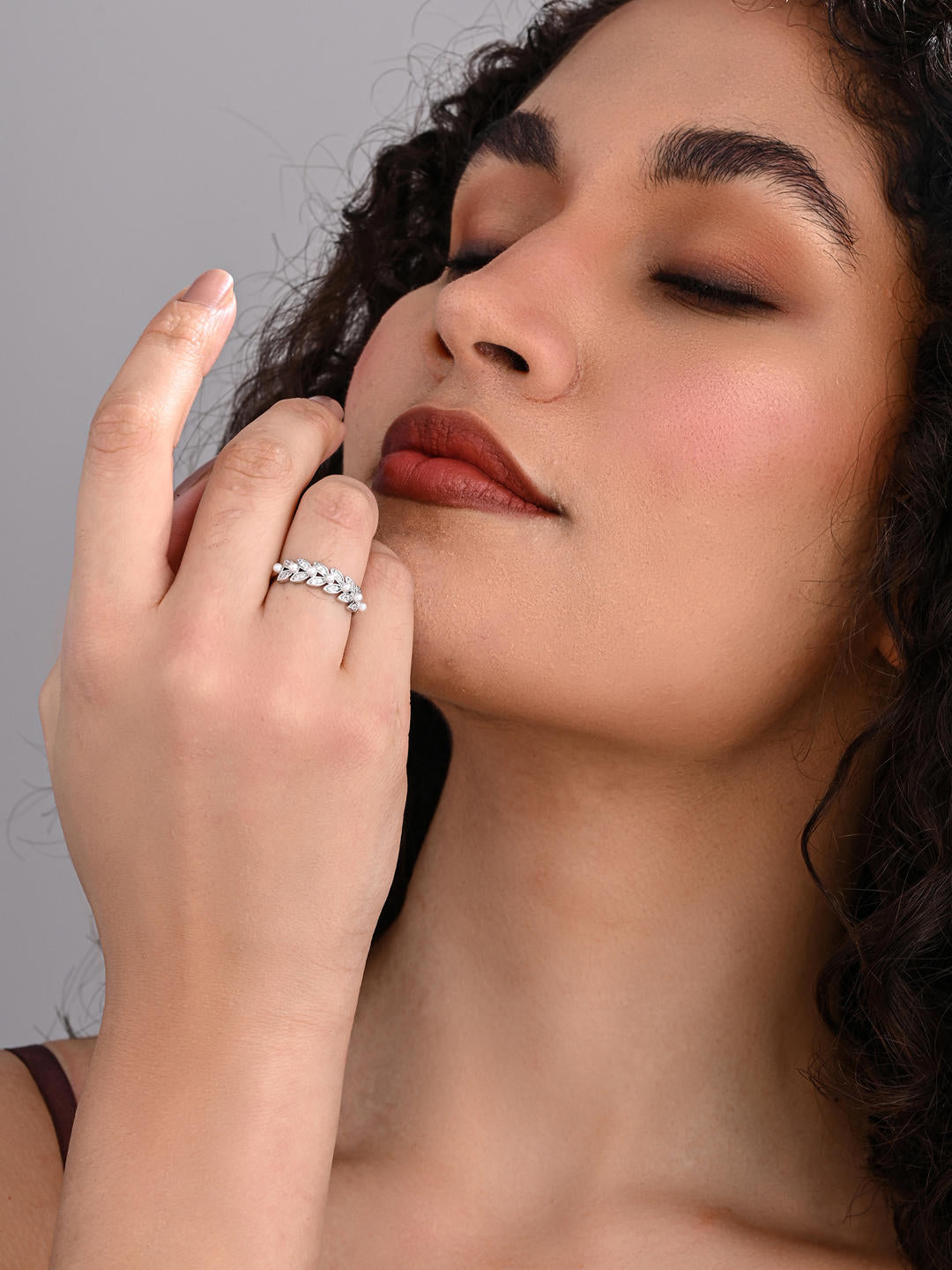 A graceful arc of petal-shaped CZ stones sits beautifully on a sleek adjustable silver band. Delicate, shimmering and feminine — the perfect everyday luxe ring that transitions effortlessly from casual to occasion wear.