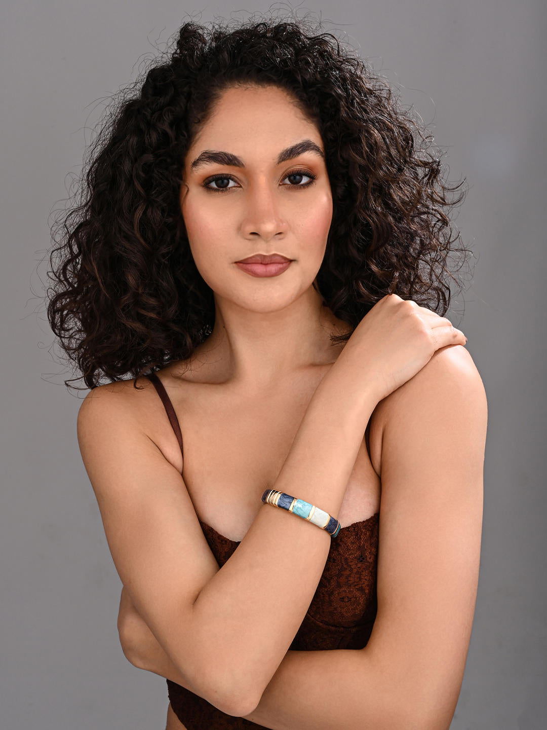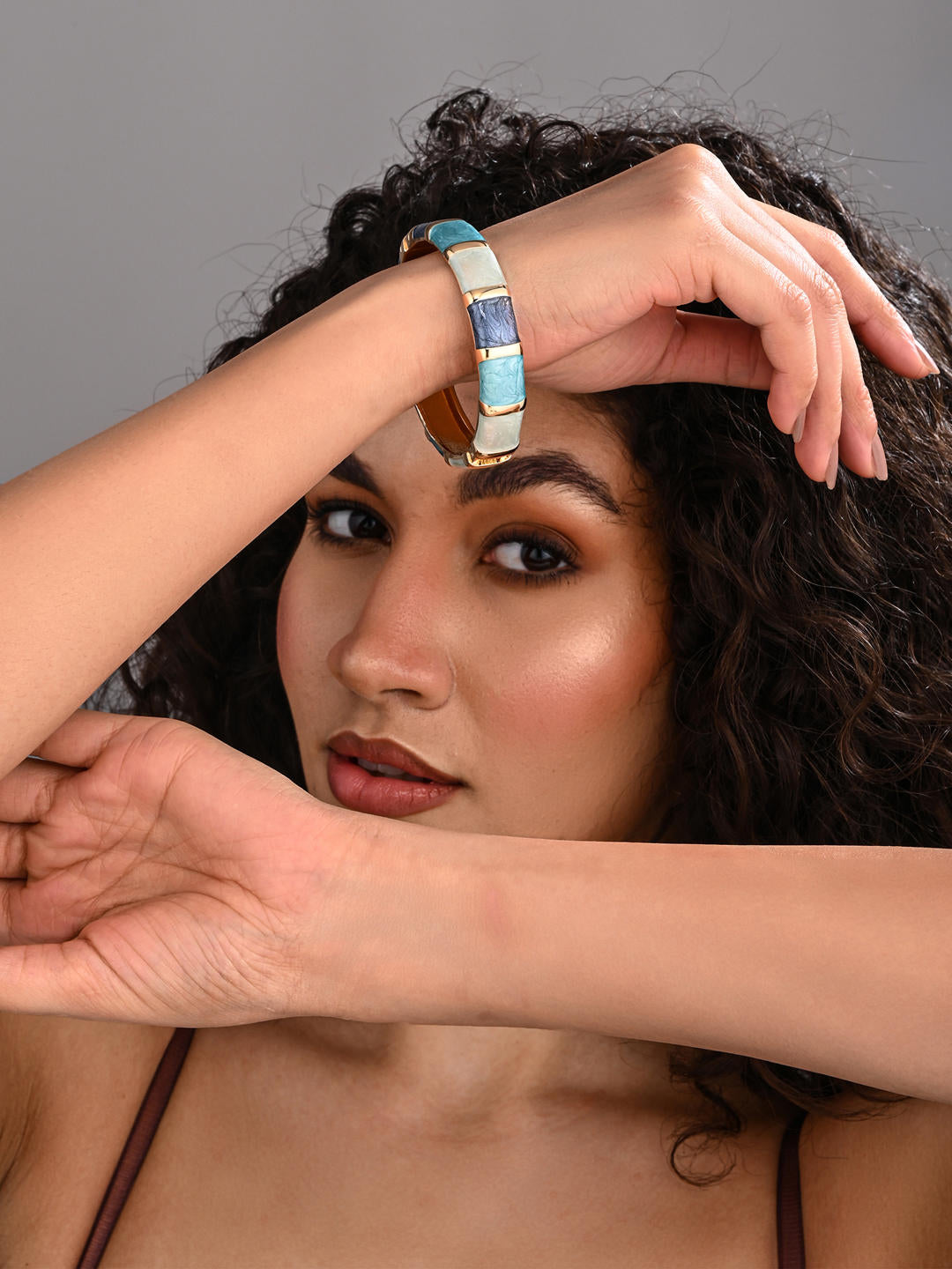 Enamel Voyage Colorblock Bangle – Aqua Teal