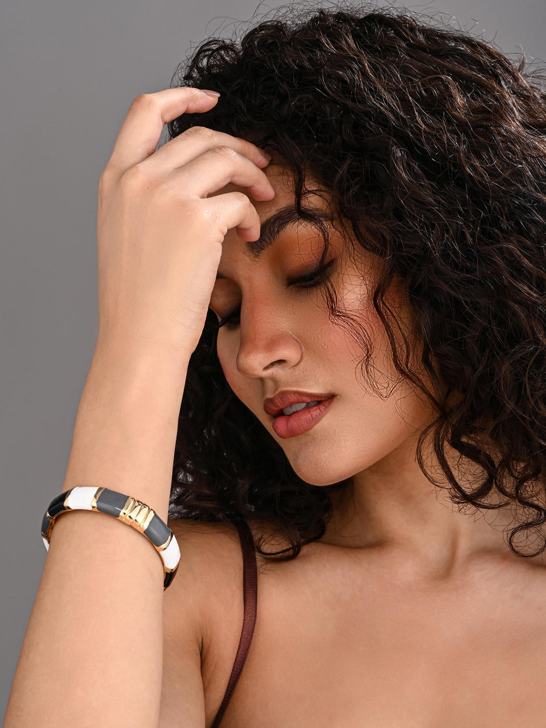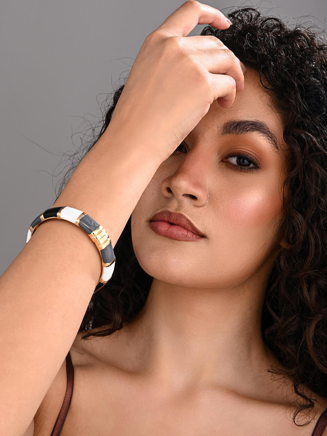 A striking colourblock enamel bangle finished in rich gold plating, designed for women who love bold yet classy styling. With glossy enamel panels and a smooth sculpted silhouette, this adjustable bangle brings vibrant luxury to both everyday and party outfits.