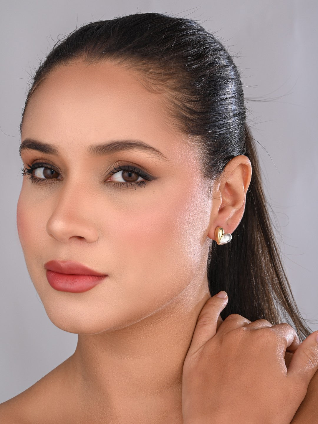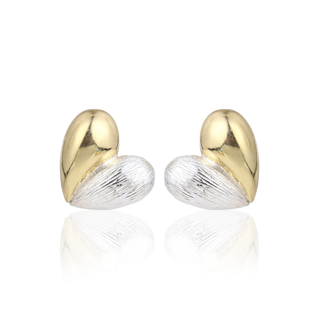 Celebrate love in its most radiant form. These heart-shaped stud earrings are crafted with a dual-texture design and finished in luxurious 18K gold plating—perfect for adding a soft romantic glow to your Valentine’s look.