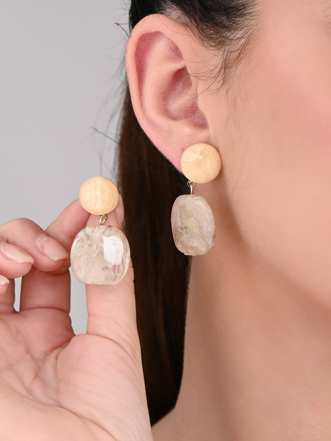Soft ivory resin earrings with marbled swirls and delicate shimmer. A timeless and versatile pair that adds understated sophistication.