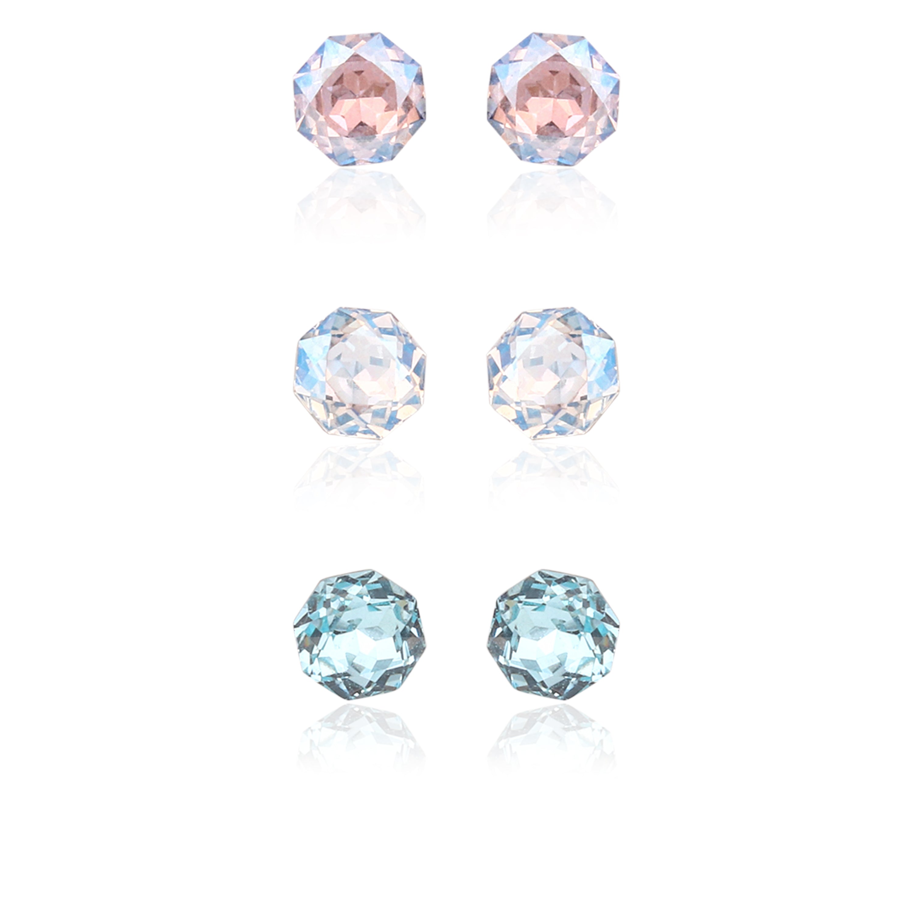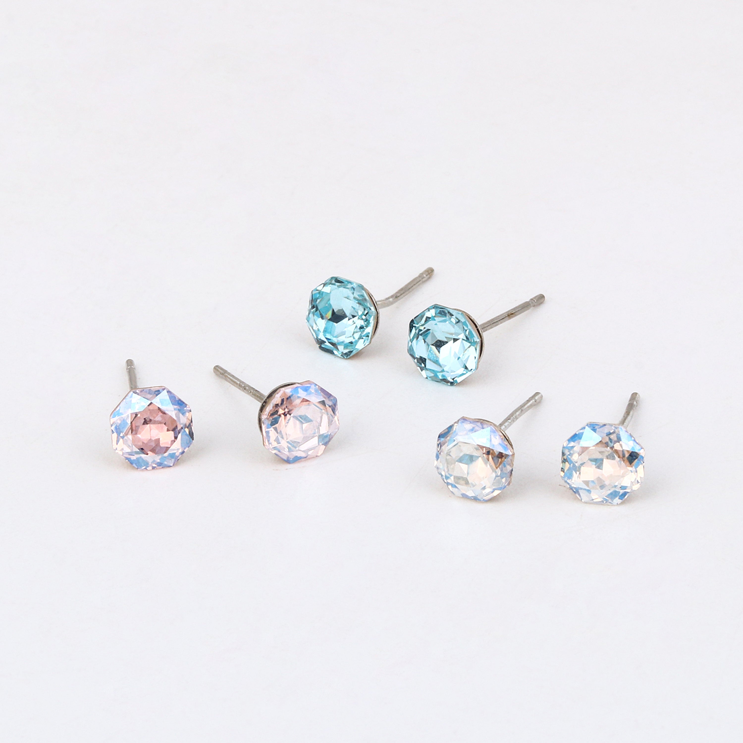 Simple elegance for children. This three-pack of classic round studs is made from hypoallergenic 925 Sterling Silver, featuring three distinct colors of sparkling stones for mixing and matching.