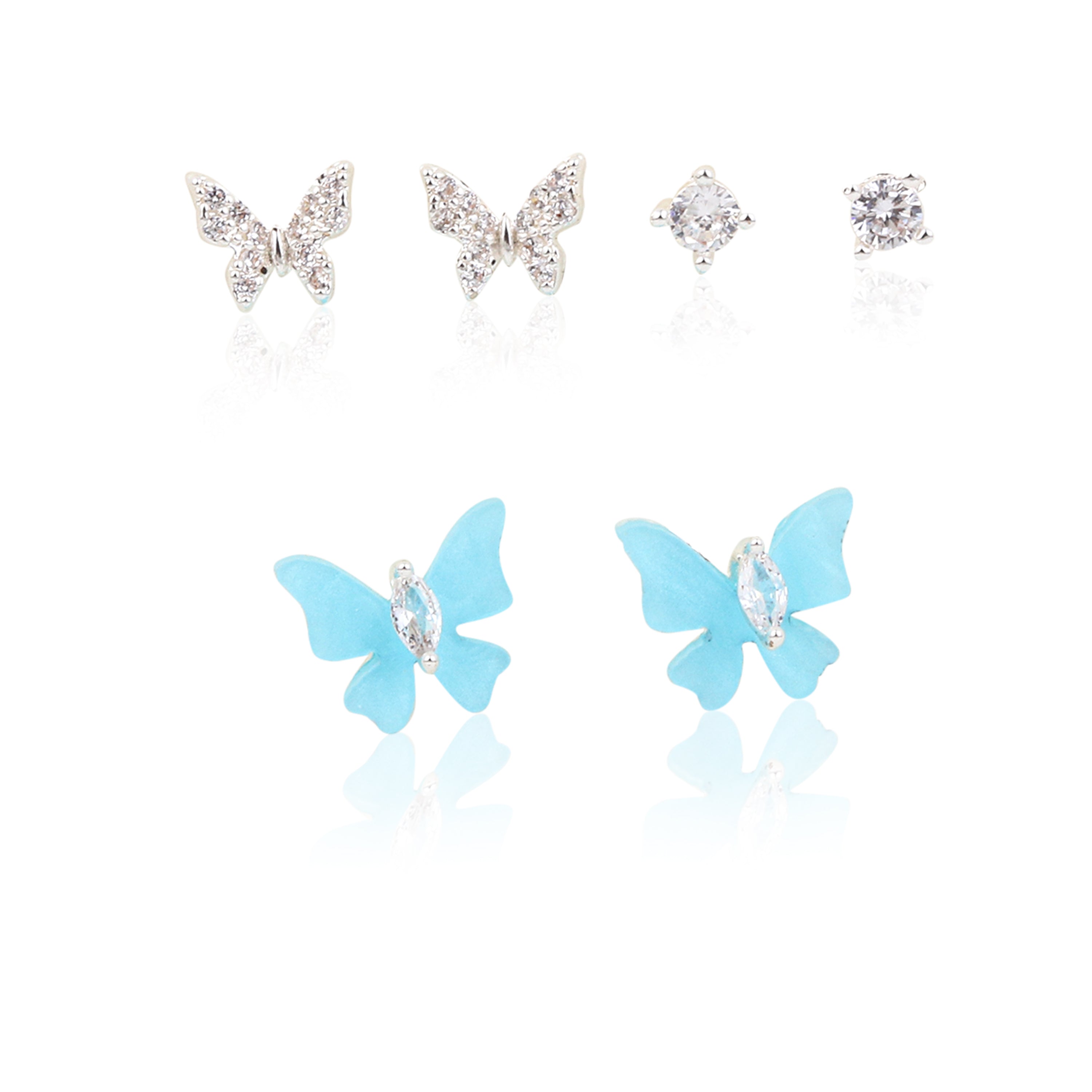 Kids' Dainty Blue Butterfly 925 Silver Stud Trio
