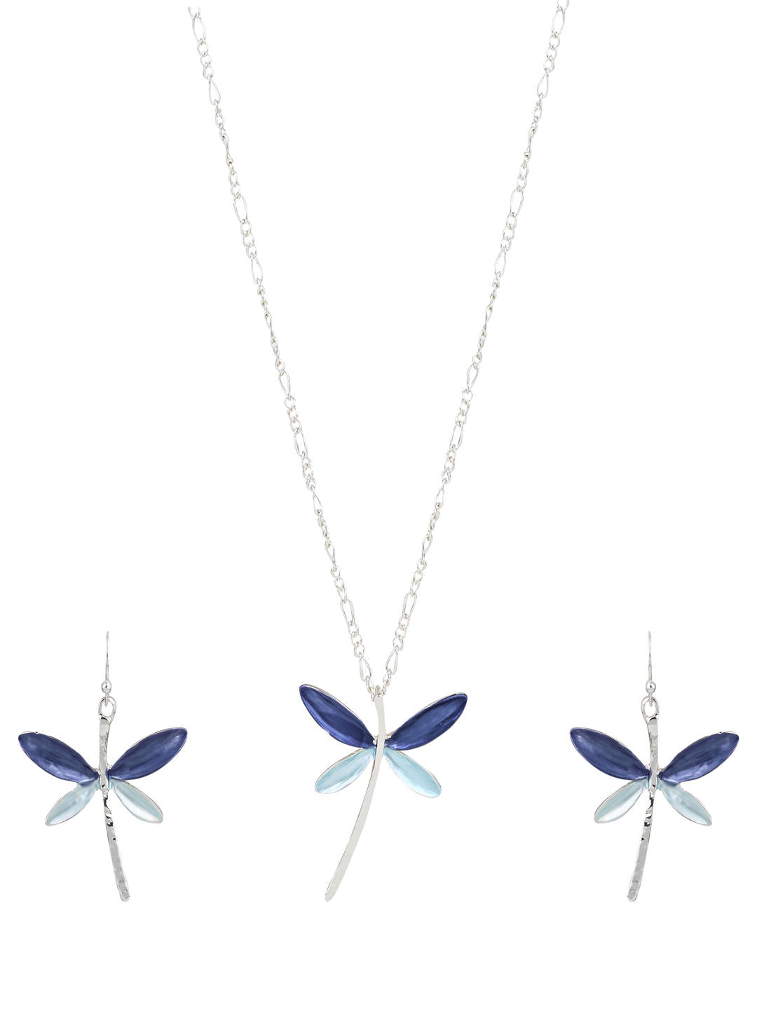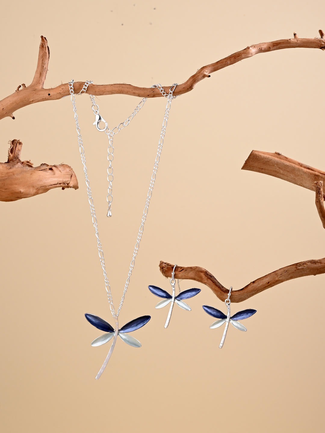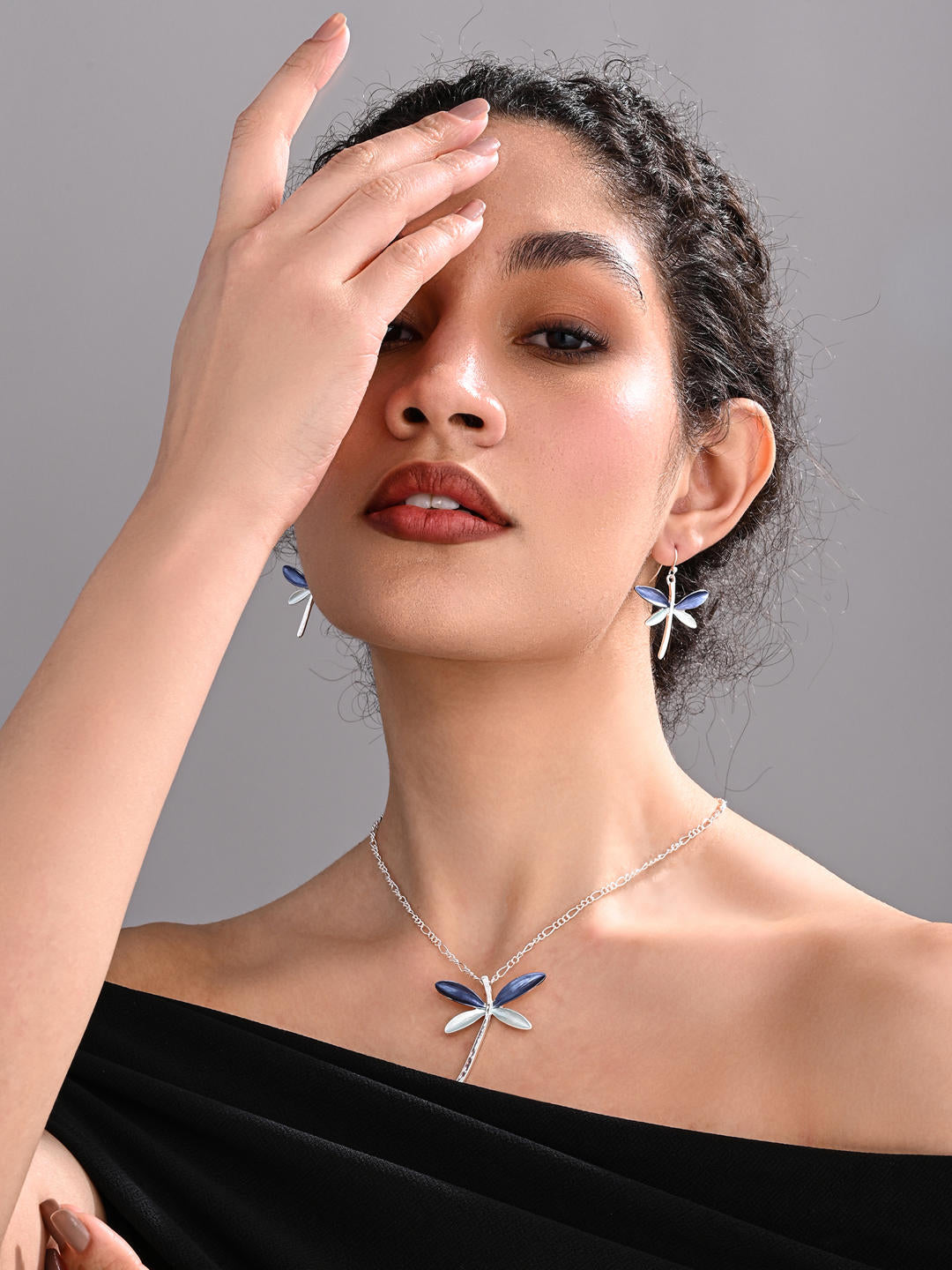 Delicate yet striking, the Lavender Mist Dragonfly Set combines soft lavender and pearl-white enamel wings on a sleek silver base. Inspired by tranquil twilight skies, this set brings a dreamy charm to every outfit.