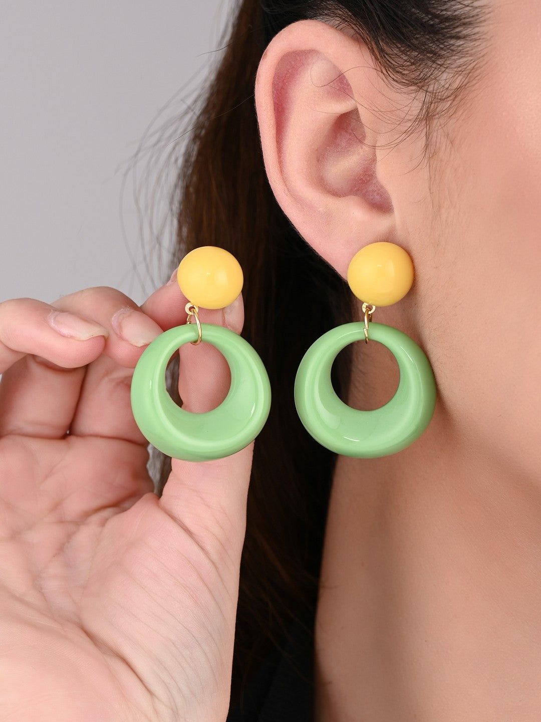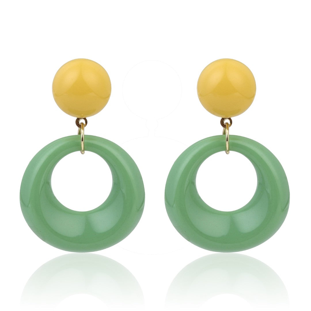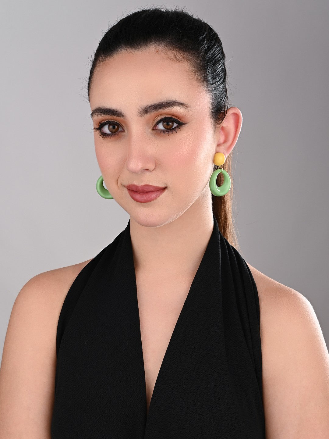 Chic and contemporary, these statement earrings feature a glossy caramel-toned stud paired with smooth ivory open hoops. Lightweight yet bold, they’re perfect for elevating casual outfits or adding a modern edge to your evening look.