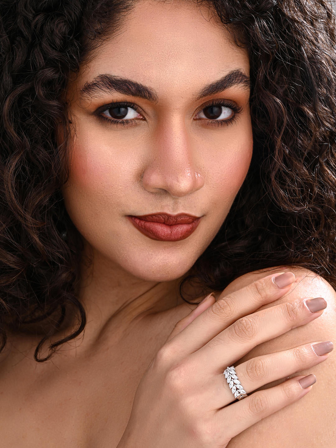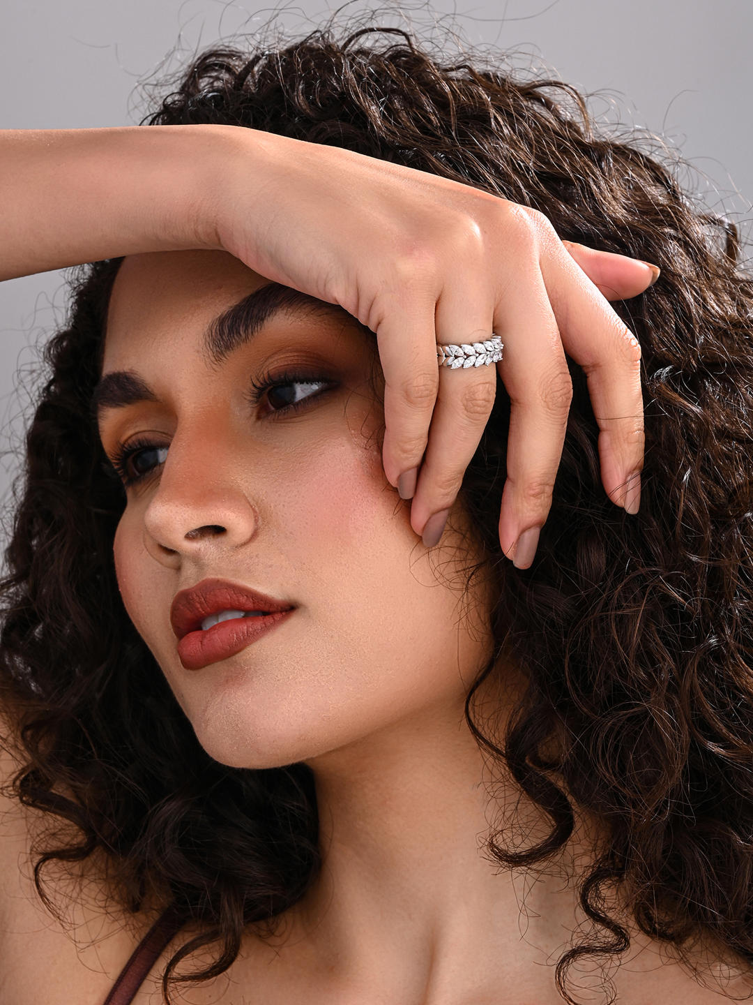 Inspired by nature’s elegance, this adjustable ring features a stunning trail of marquise-cut CZ stones forming a leafy silhouette. Sleek, sparkling and timeless — the perfect statement piece to elevate both everyday and occasion wear.