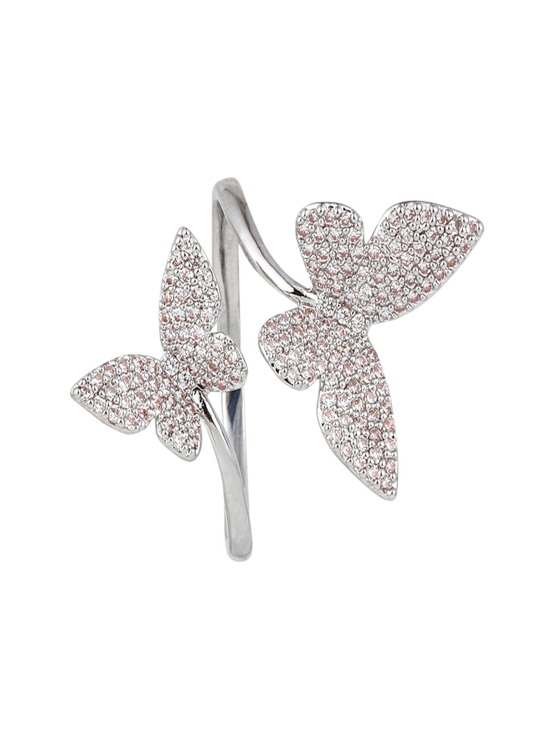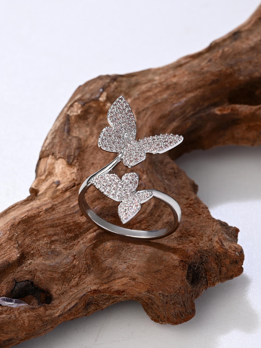 A charming dual-butterfly design encrusted with shimmering stones, symbolizing freedom and grace. Crafted on an adjustable band for effortless comfort and a dazzling touch to every outfit — available in Gold and Silver.