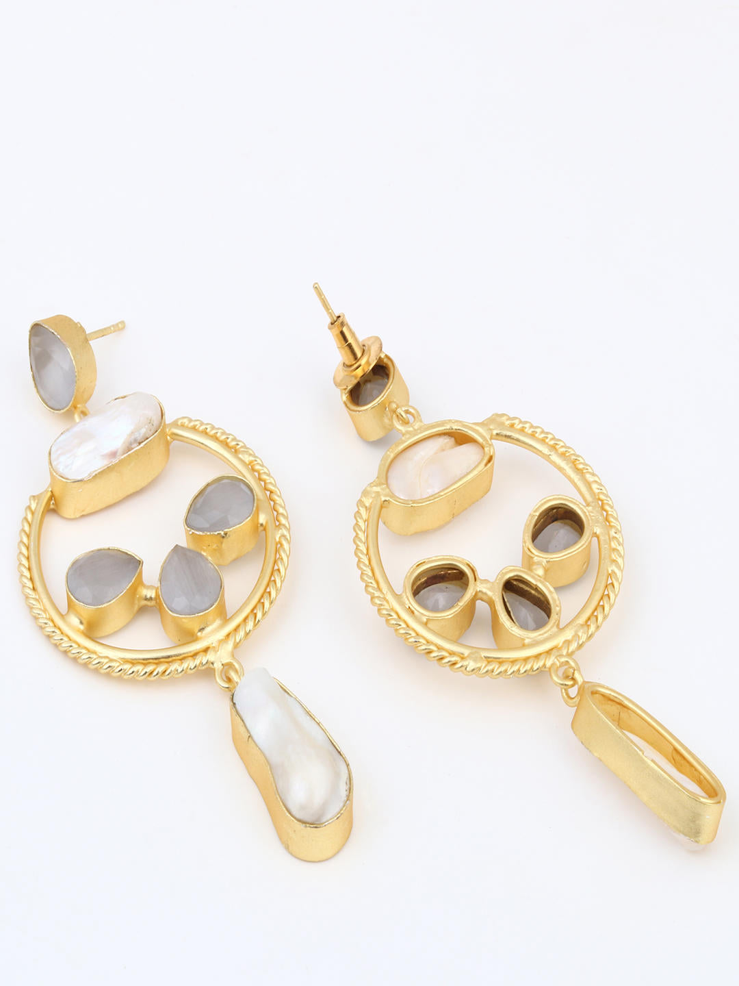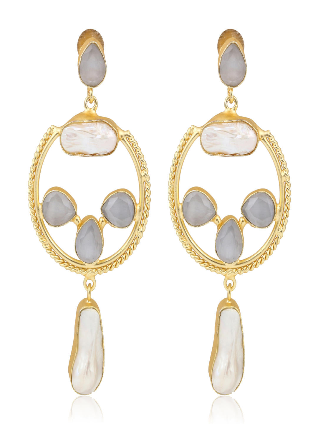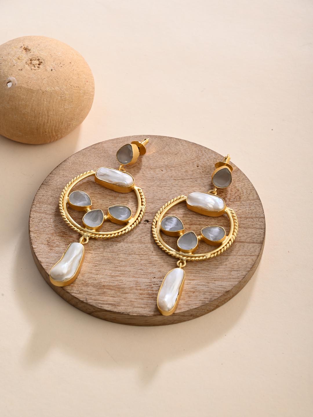 Contemporary gold-toned hoops accented with pearls and geometric details, designed to elevate evening and festive styles.