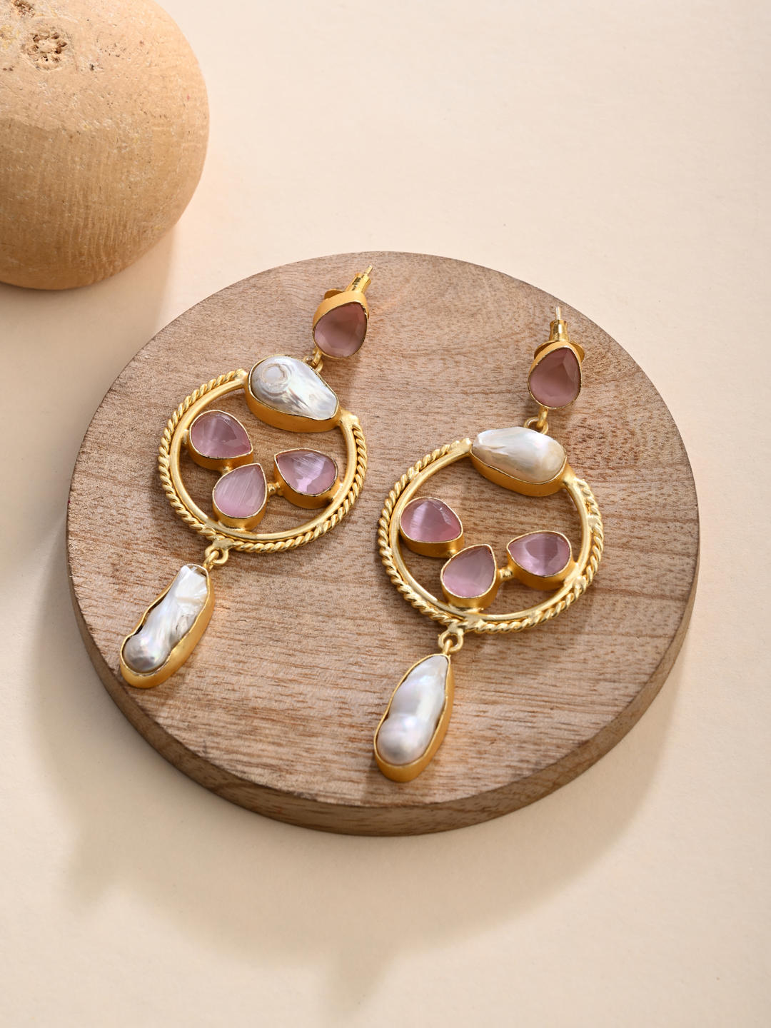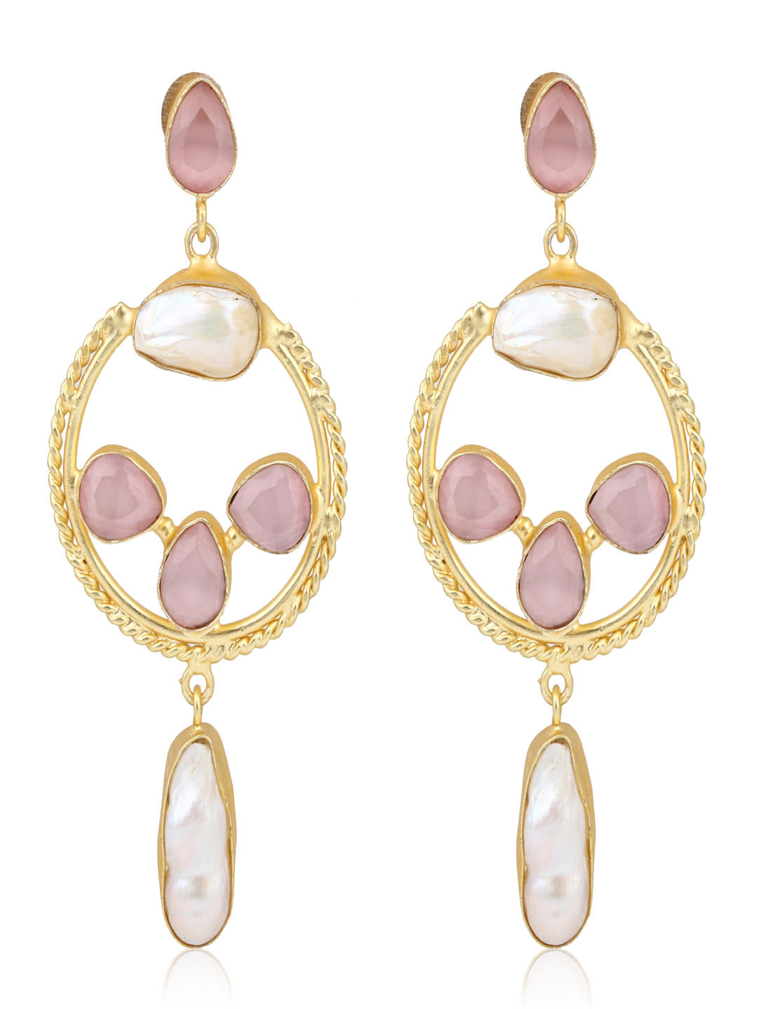 Contemporary gold-toned hoops accented with pearls and geometric details, designed to elevate evening and festive styles.